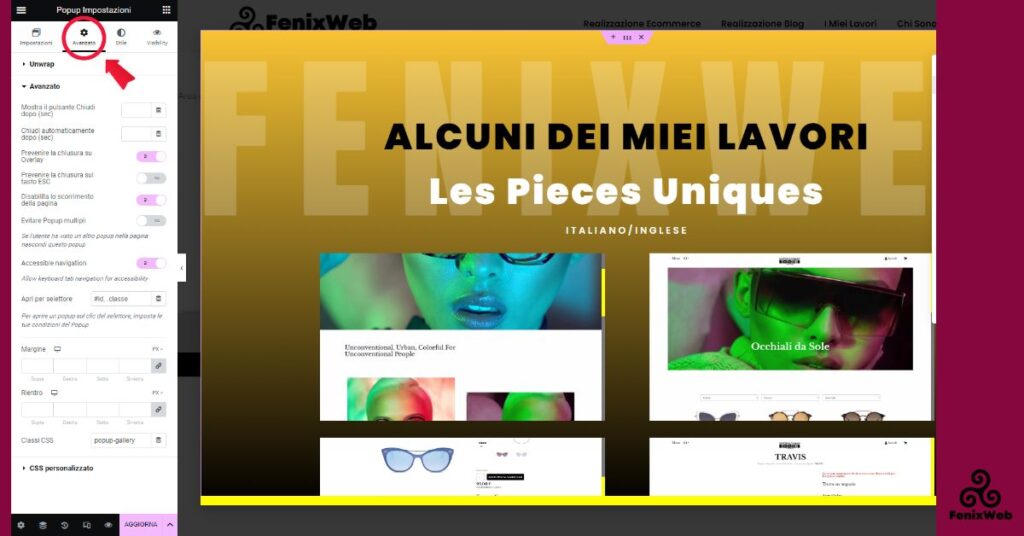 Impostazioni Avanzate Popup Elementor