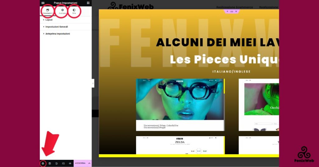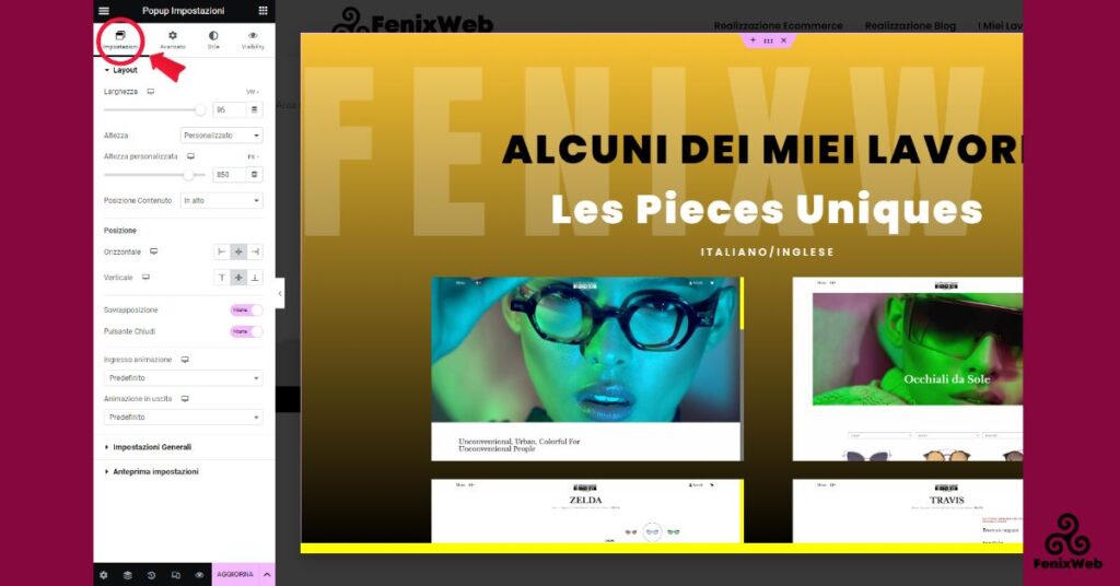 Impostazioni Layout Popup Elementor Pro